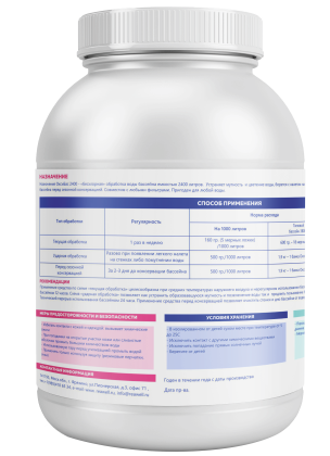 «Бесхлорная» обработка воды бассейна емкостью 3800 литров. Устраняет мутность и цветение воды, борется с налетом на стенках и дне бассейна. Эффективен для обработки бассейна перед сезонной консервацией. Совместим с любыми фильтрами. Пригоден для любой воды.